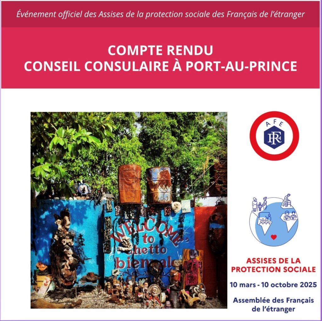Vous pouvez dès à présent retrouver le procès verbal du Conseil Consulaire qui s’est tenu le 23 juin à Port-au-Prince. Présidé par Madame Christelle Paul et en format Conseil consulaire pour la protection et l’action sociale, ce procès verbal revient sur le contexte des Assises de la protection sociale de Français de l’étranger ainsi que sur les propositions pour améliorer les dispositifs déjà existants.