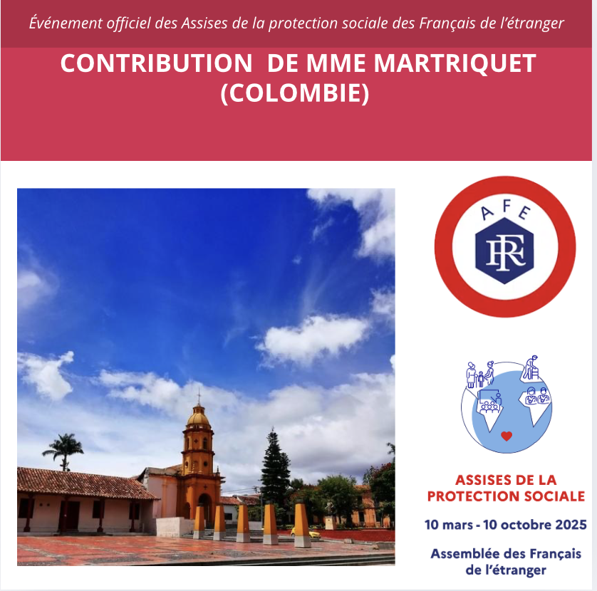 Dans le cadre de sa participation comme paneliste aux Assises de la sécurité sociale des Français de l’étranger, Mme Martiquet, Française expatriée en Colombie, souhaite partager plusieurs propositions concrètes issues des retours de terrain et des difficultés régulièrement rencontrées par les Français de Colombie. Ces propositions visent à rendre les dispositifs plus lisibles, plus équitables et plus accessibles.